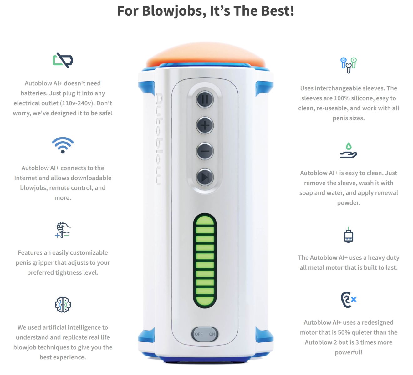 From LickatoadWHAT HAS SCIENCE DONE? Well, in my case, it's given me some of the best orgasms of my life. This is hands-down the best experience I've ever had with a male sex toy. So what makes this one so special? Well, as they say, variety is the spice of life, and this is the only toy I know of that has variety built-in to its DNA. Even other blowjob-type toys only give you a blowjob in the loosest sense. It's an easy joke to make but the other ones I've tried are literally like getting a blowjob from a robot, it's just up and down, up and down, same speed same depth same everything. In some cases that's even worse than just doing it by hand, because it can get really boring in a hurry. The Autoblow AI solves this by (potentially) offering a different experience every time you try it. It has 10 settings, but honestly I think the "surpris mode" feature is the only one you'll ever need. It's truly unique among sex toys because you can't tell what's coming next. Even some of the newer things on the market like the ones that link up with a porn video, eventually those will get stale because it'll always be the same set of scenes. The AI will always be something a little different. Of course even beyond that the other modes have a lot to offer too, much better than the rest of the field. Anyway, if I have any complaints I'd say that even though it's a lot quieter than anything else I've tried, it's the sound of the motor can pull you out of the moment. One easy way to solve that is to wear some headphones with some porn on your phone or whatever to drown it out