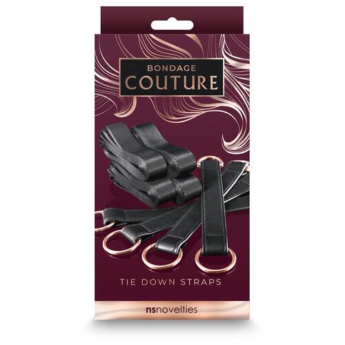 Step up your game with the ultimate in bedroom luxury. The Couture Tie Down Straps by Bondage Couture are all about turning fantasy into reality with a touch of class. Crafted with precision and style, these straps are your go-to for secure, stylish restraint play. Whether you're a seasoned pro or just dipping your toes into the world of bondage, these straps promise to deliver an experience that's as elegant as it is exhilarating.