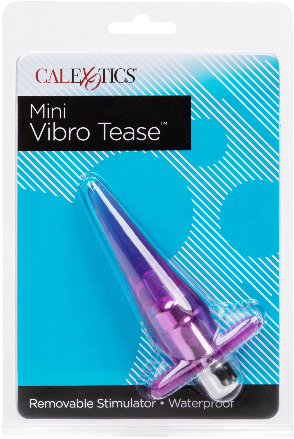 4" Mini Tease Vibrating Butt Plug from Calexotics. This sleek number is your ticket to a world of sophisticated pleasure, wrapped in a transparent TPR casing housing a silver-plated vibrating stimulator. It's all about style and satisfaction, and whether you're in the shower or kicking back in the bath, this waterproof wonder is up for the task. Slide it in your bag, and be the master of your own pleasurable universe, wherever you roam.