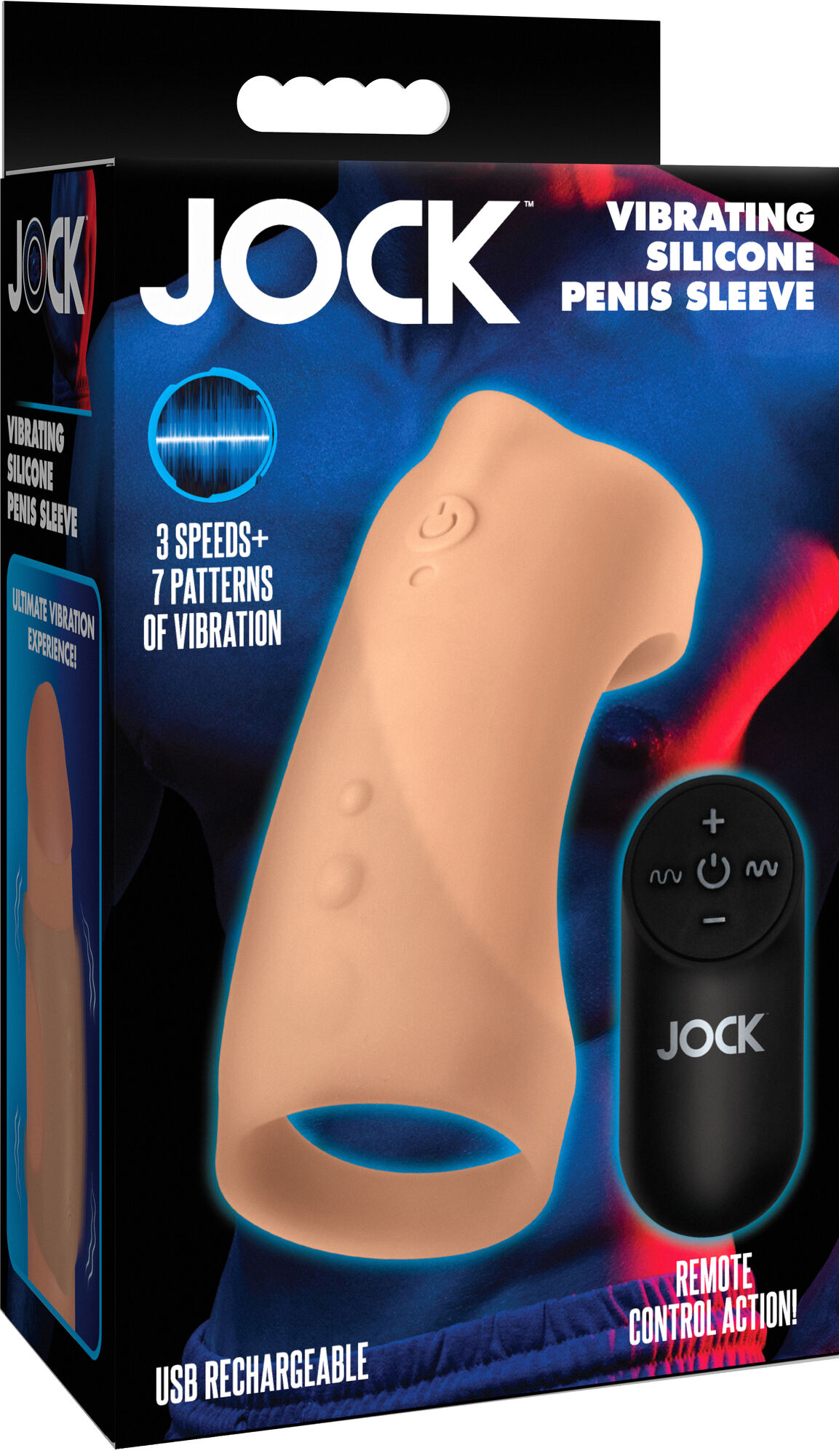 Dial up the excitement and take your pleasure sessions to thrilling new heights with the JOCK Vibrating Silicone Penis Sleeve - Light. This smooth operator isn’t here to muck around. Made from silky soft silicone, it's comfortable on the skin while delivering mind-blowing vibrations for enhanced solo play or couple's fun. With a remote control in hand, you'll have the power to cruise through 3 speeds and 7 vibration patterns like a legend—guaranteeing that it's not just your engine that's roaring. Whether you're flying solo or want to give your partner a ride they won’t forget, this sleeve is primed to elevate your pleasure game to unmatched levels.