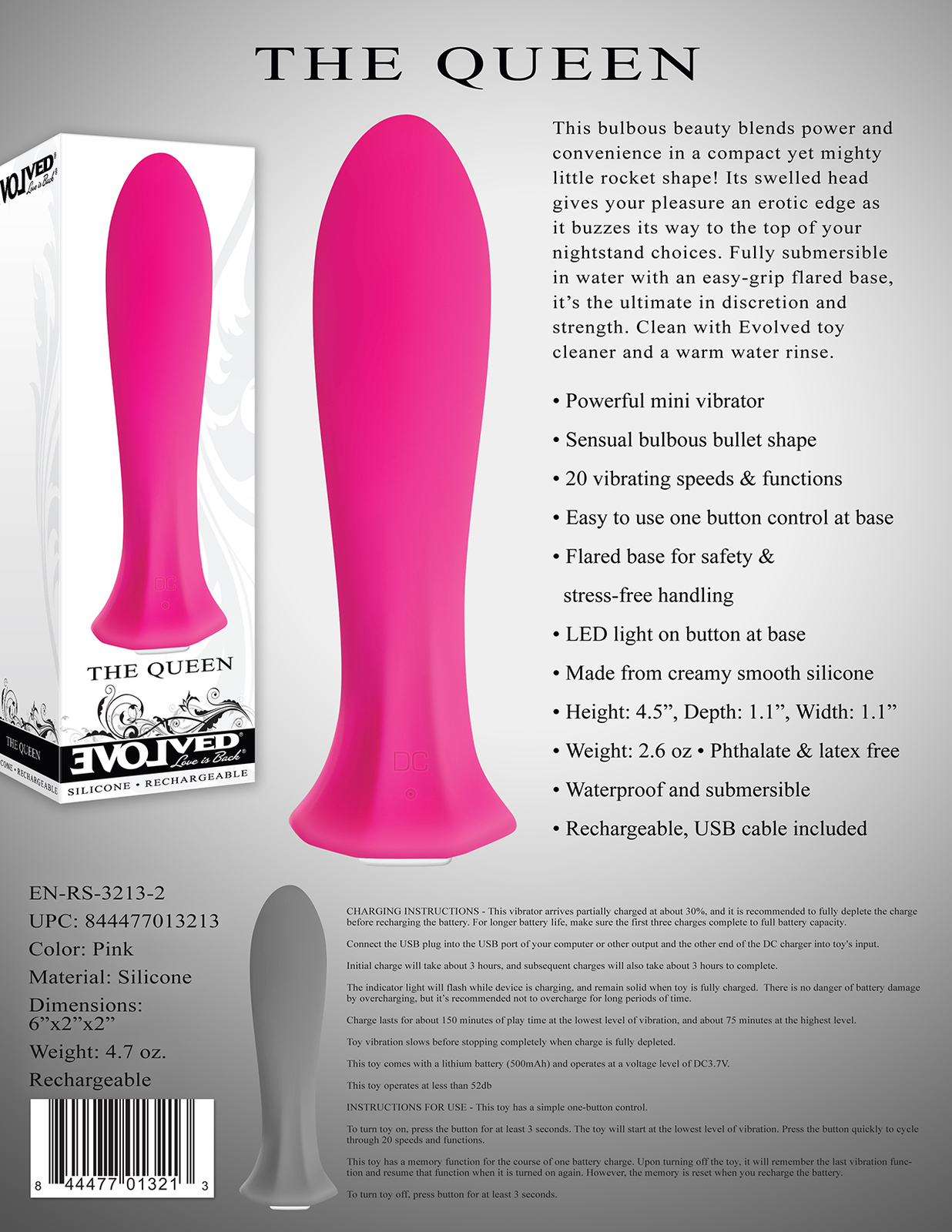 Meet your new secret weapon for shared pleasure: the 5" The Queen Bullet Vibrator by Evolved Novelties. This little powerhouse is designed to elevate her experience, making you the hero of every intimate encounter. Its bulbous shape and potent vibrations offer an erotic edge that’ll keep her coming back for more. Whether you’re exploring together or treating her to a solo session, this discreet yet mighty toy will quickly become a bedside essential.