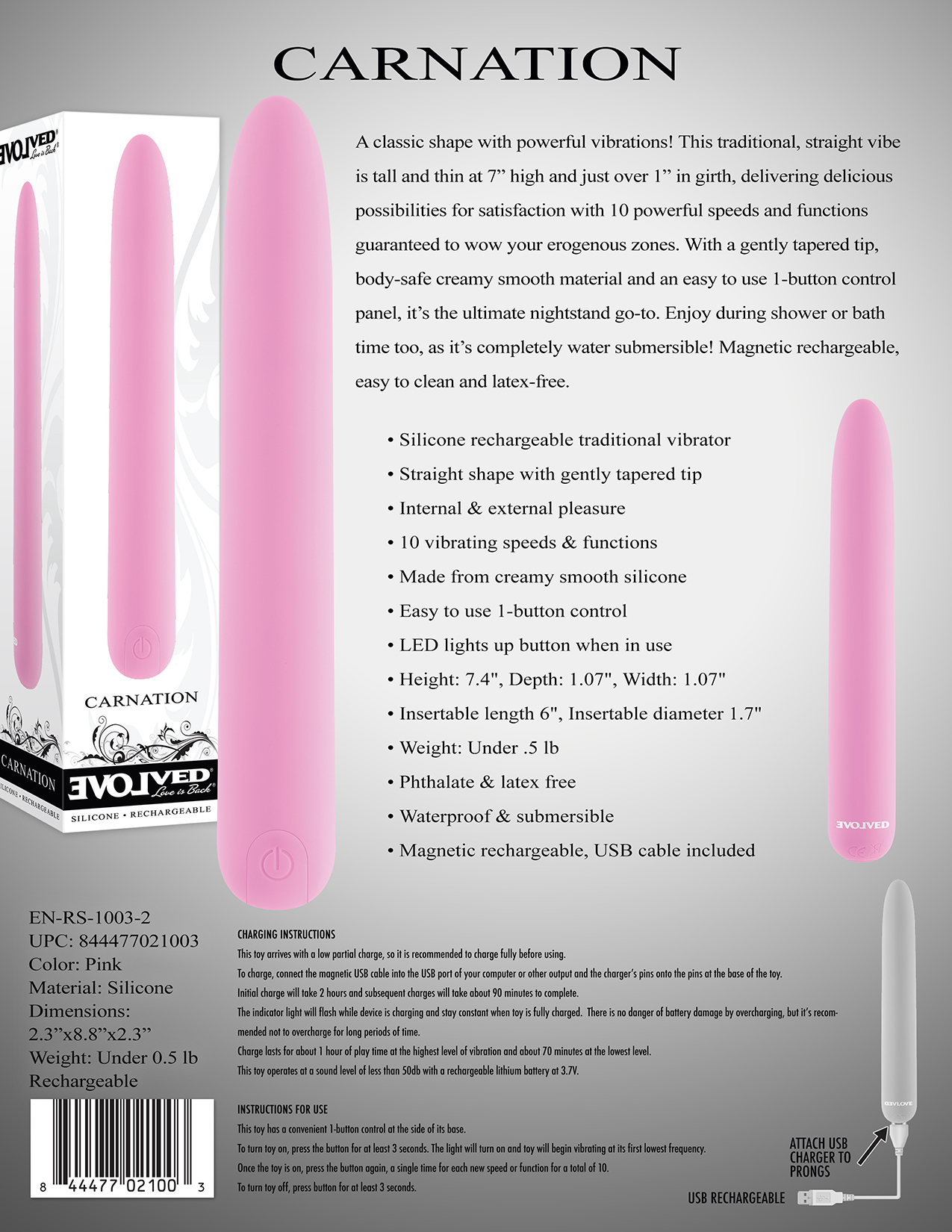 Step up your gifting game with the Carnation Classic Vibrator 5.5" from Evolved Novelties. This sleek and elegant beauty isn’t just a vibrator; it’s your secret weapon for unforgettable nights and blissful mornings. With its classic design and powerful vibes, it’s the perfect addition to her pleasure arsenal — and trust me, she’ll thank you later. Dive into 10 powerful speeds and functions that promise to charm every erogenous zone with precision. Whether it’s in the bath or the bedroom, this waterproof wonder is ready to deliver.