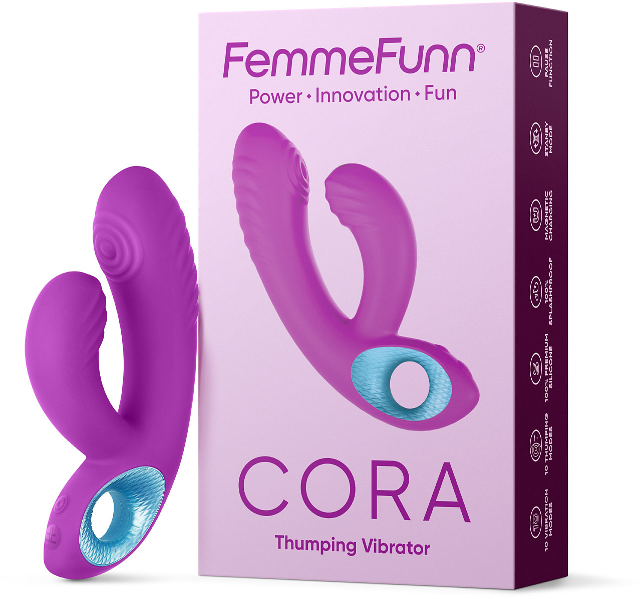 Feel the pulse and let the pleasure soar with the Cora Rabbit Vibrator by Femme Funn. This isn't just another toy — it's an electrifying experience that’ll have your heart racing and your senses tingling. With its dual motors, Cora delivers a symphony of vibrations and thumping sensations that’ll leave her breathless and begging for more. Designed to please, its unique shape hits all the right spots, turning the ordinary into extraordinary. Whether it’s a gift for her or something to enjoy together, this is one thrilling ride you won't want to miss.
