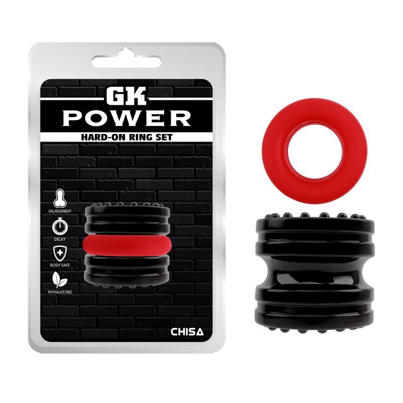 Get ready to seriously upgrade your playtime with the Hard on 2 Pc Ring Set from GK Power. This isn't just any old set of rings—this is about bringing your A-game to the bedroom. Made from stretchy, body-safe TPE, these two versatile rings are built to pump up your erections, boost your stamina, and dial up the satisfaction for you and your partner. You've got a textured black ring and a smooth red ring, each with its own unique feel—use them solo or together to tailor your experience and take control like a pro.