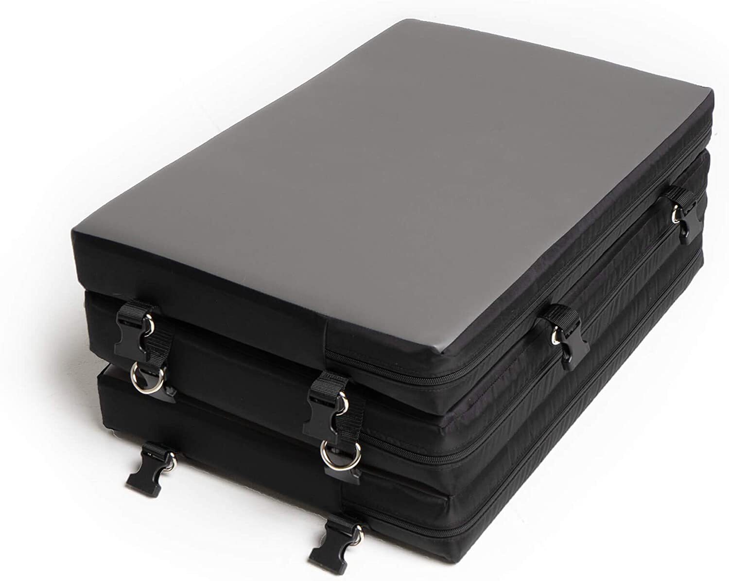 • Flattened: 24”L x 48”W x 3”H / 61cm x 122cm x 7.6cm