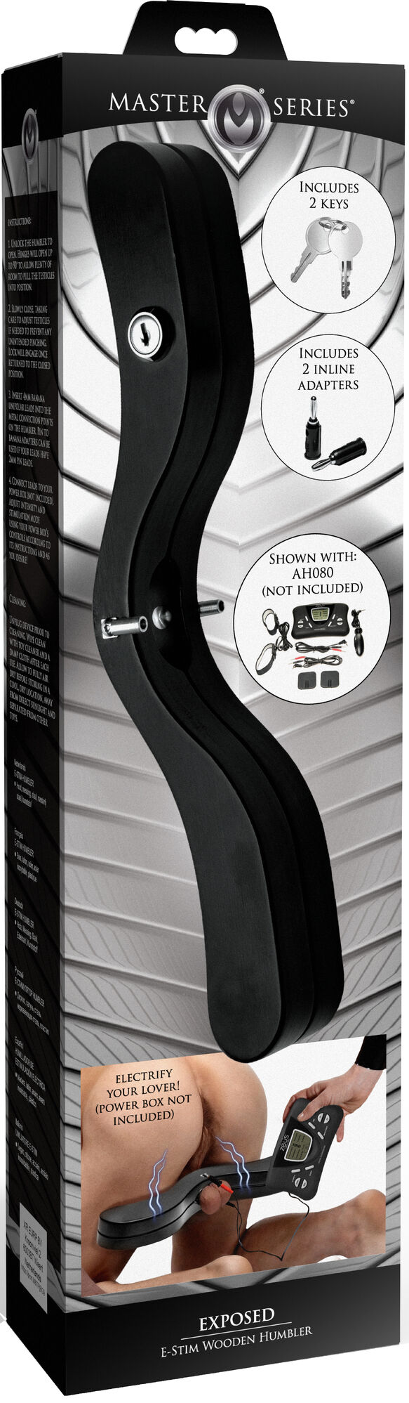 Crank up your dominance game with the unapologetically bold Master Series Exposed E-Stim Wooden Humbler. This isn't just for your average weekend session—this is advanced gear for the bloke who knows how to keep things electrifyingly intense. Made from smooth wood, this humbler masterfully balances durability with a flair for the dramatic. Designed for those of you keen to add some crackling electricity to your bag of tricks, it locks you or your partner into submission with more than just its snug fit. With its tantalizing promise of electric shocks and a hefty dash of kink, it’s not just a humbler—it’s an experience.