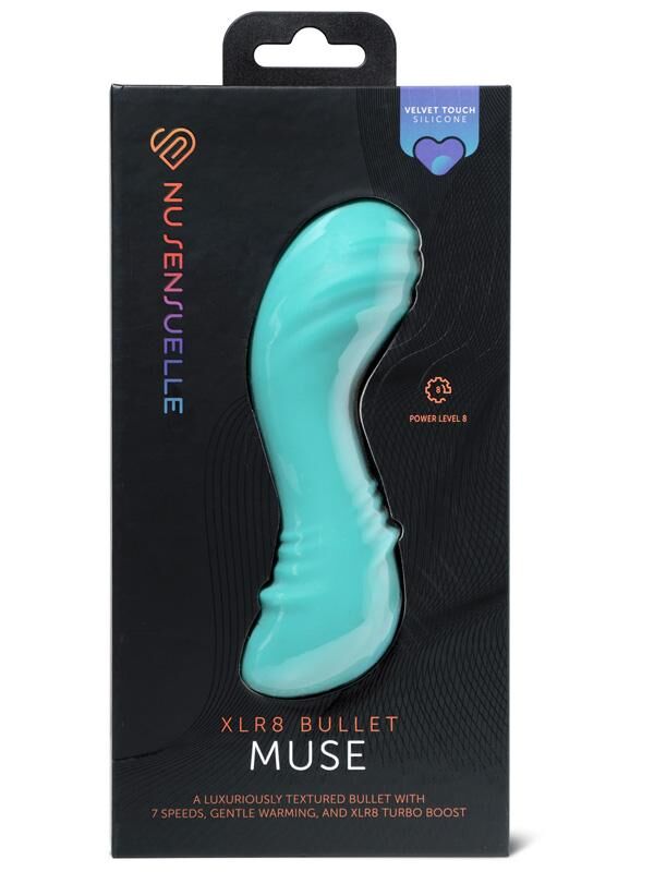 Meet the ultimate ally in your pleasure arsenal, the Nu Sensuelle Muse XLR8 Bullet Blue. Cloaked in Velvet Touch™ liquid silicone, this little gem is as inviting as it is enticing — a sure invite to a realm of luxury and sensuality you won't want to leave. From the moment your fingers graze it, you're hooked, lost in luscious sensation, and eager for more.