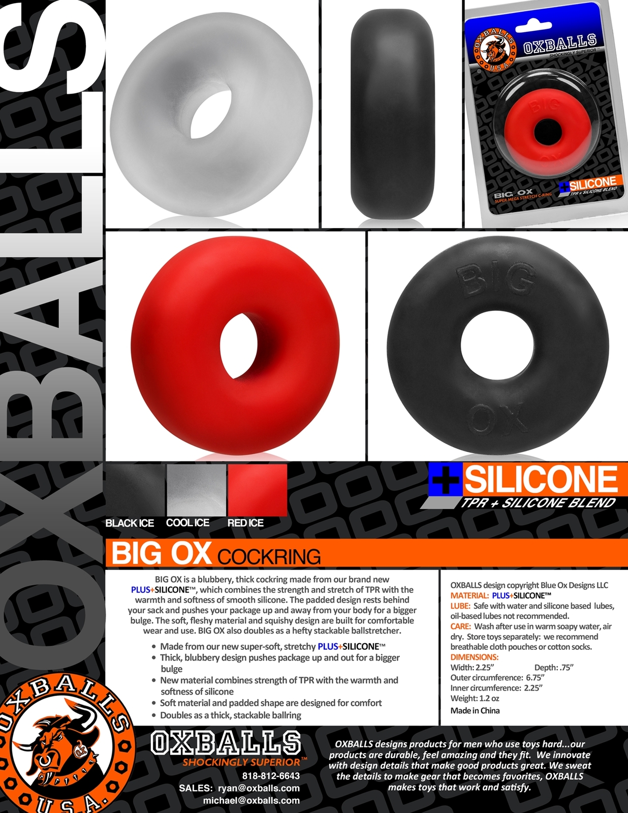 Buckle up, because your tackle’s about to get the attention it deserves. The Big Ox Cock Ring from Oxballs isn't just a ring; it's your gear’s personal trainer, ready to bulk up your package like it's hitting the gym. Made from Oxballs’ renowned PLUS+SILICONE, this chunky beast is firm yet flexible, like your favourite pair of jocks, but primed for performance. Slide it on and watch as your pride and joy transforms into the showstopper it was meant to be.