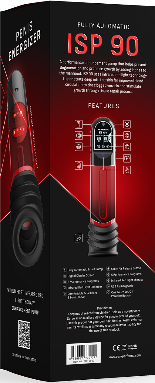 Get ready to experience the next level of deep suction bliss with the ISP90 Curve Infrared Automatic LCD Penis Pump Red. This is not just any pump—it's your ticket to a pumped-up, throbbing experience that demands attention. Let it lock you into powerful, automatic suction while warming you up with infrared magic, boosting blood flow for that bigger, firmer look and feel. It's all about that satisfying fullness, and with this tool in your arsenal, you're poised to impress.