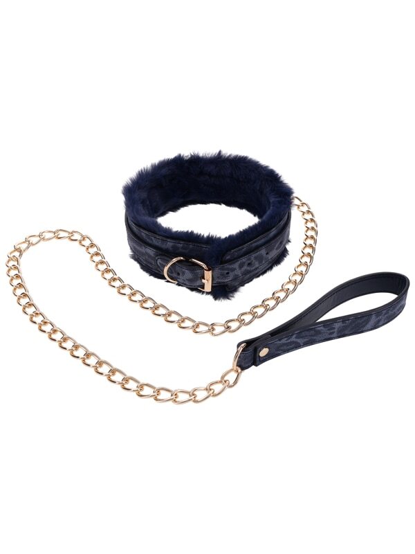 Unleash your inner beast with a touch of elegance and power. The Sex And Mischief Cougar Fur Collar And Leash is your ticket to a world where sophistication meets seduction. Imagine the feel of royal blue faux fur against the skin, paired with a stylish gold leash that turns any room into your personal playground. Whether you're new to the game or a seasoned pro, this collar and leash set is all about playful power dynamics and luxurious adventures.