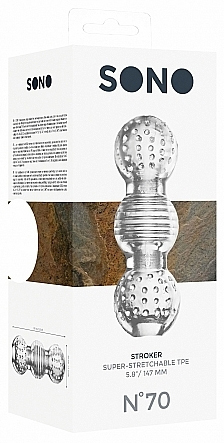 Mate, it's time to turbocharge your solo sessions with the ultimate stroker experience. The Stroker No 70 from Sono is your passport to a world of pleasure that's as intense as you want it to be. Crafted with a tantalizing three-stage stimulation pattern, this translucent beauty is not just a toy—it's a pleasure powerhouse. Slip inside and let the dotted, lined, and tighter end sections take you on a rollercoaster of sensations. Whether you're flying solo or adding some spice with a partner, this stroker is your go-to for mind-blowing moments.