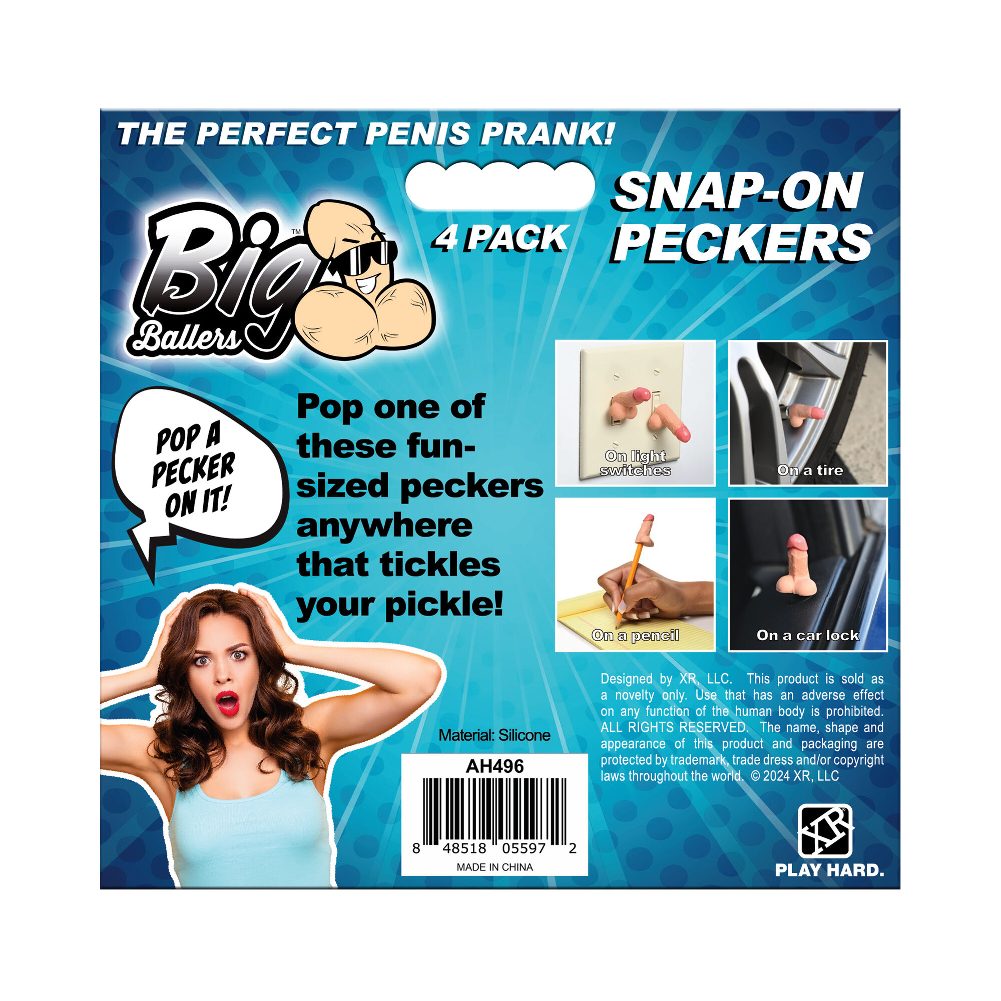 When life calls for a cheeky twist, answer with the confidence of a bloke who knows how to land a laugh. The Big Ballers Snap-On Peckers - 4 Pack from XR Brands is here to make your next gathering unforgettable. These mini wonders are perfect conversation starters, ready to attach to anything from a mate's pen lid to a bike tire valve. They're not just party props — they're a guaranteed good time.