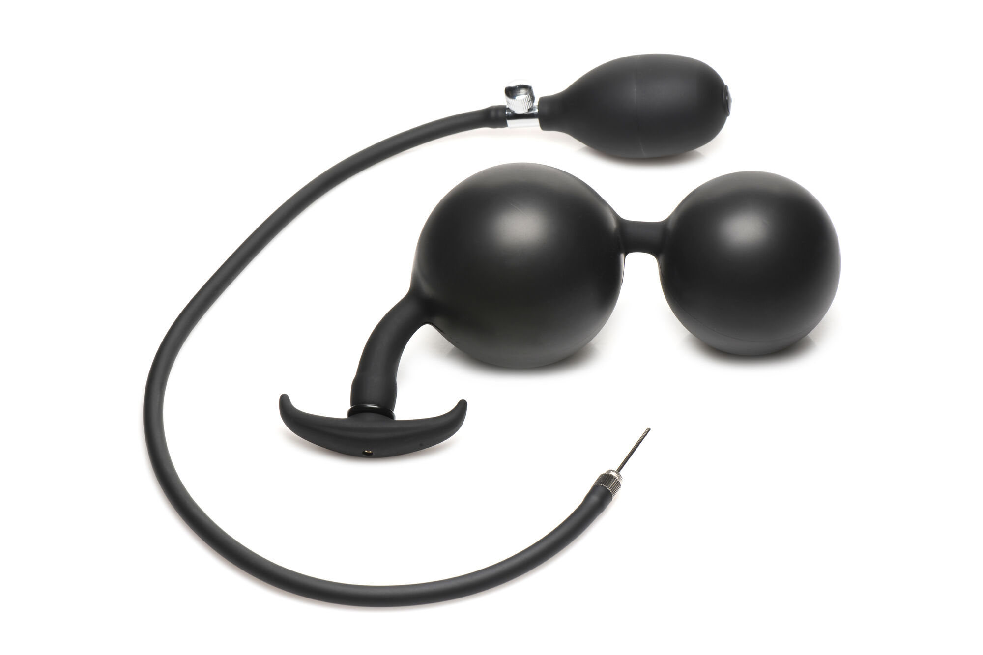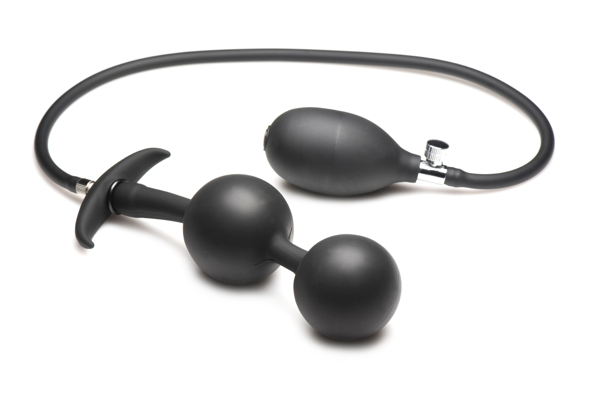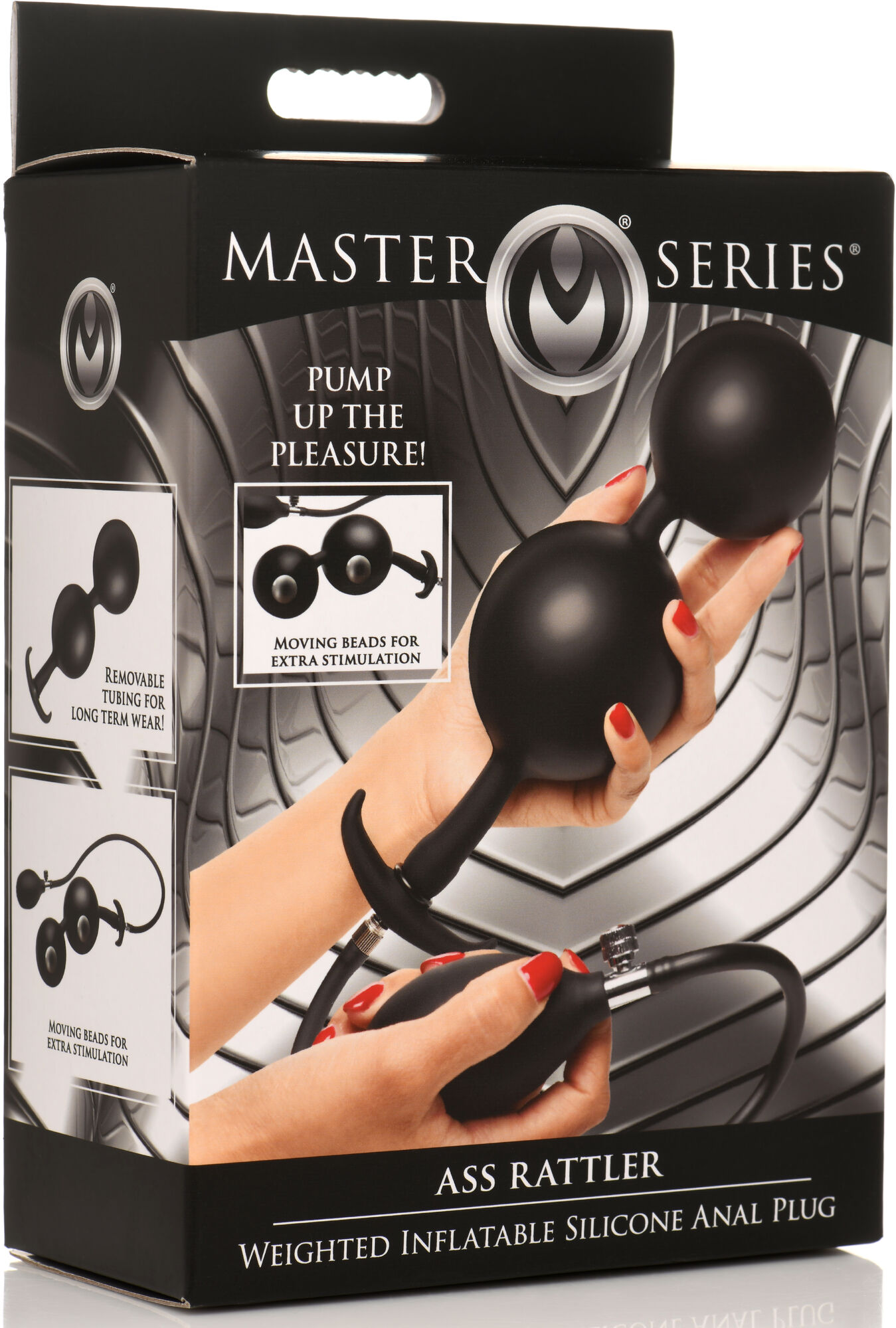 Unleash a world of pleasure potential with the Master Series Ass Rattler Weighted Inflatable Silicone Anal Plug. Imagine the thrill of weighted steel balls encased in silky-smooth silicone, exploring the depths of your desires. These hefty spheres, when paired with your favourite lube, slide in with ease, ready to deliver intense sensations. But the real magic? With a simple squeeze of the hand-pump, these spheres can inflate from a cheeky 1.2 inches to a whopping 2.8 inches, ramping up the pressure and delivering an unforgettable experience tailored just for you.